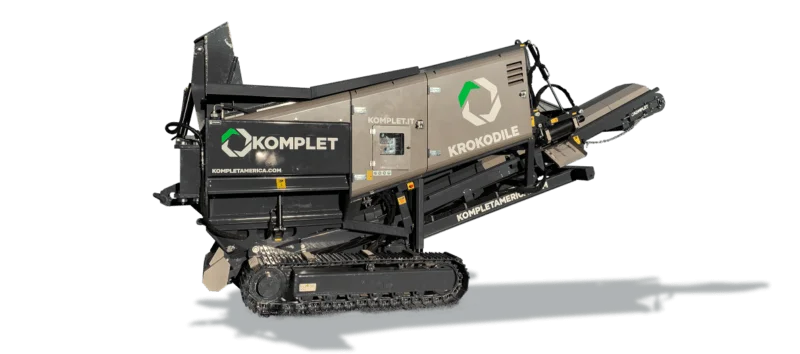 Le Krokodile de Komplet est un broyeur à double arbre mobile conçu pour le traitement de matériaux variés sur les chantiers de construction, de recyclage et de démolition.