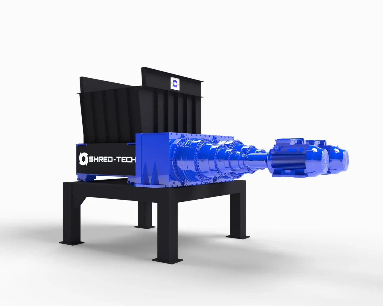 Doté de deux moteurs électriques ou hydrauliques développant jusqu’à 500 à 600 HP, il offre une puissance de broyage exceptionnelle. Sa conception intègre des arbres hexagonaux robustes et un système de coupe optimisé, garantissant un rendement élevé et une grande fiabilité dans le temps.